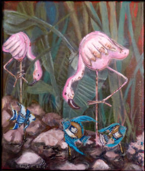 Cartoon characters: Felix the cat and the Donald Valerie O'Flynn Creativity loop #1: Cartoon characters - Felix the cat and the Donald Original acrylic painting on canvas, 5” x 5’