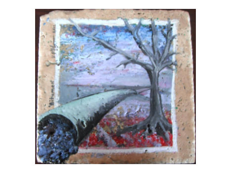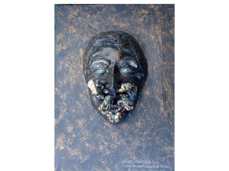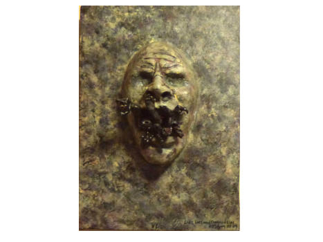 Mixed media on canvas (polymer clay, fibreglass, acrylic)