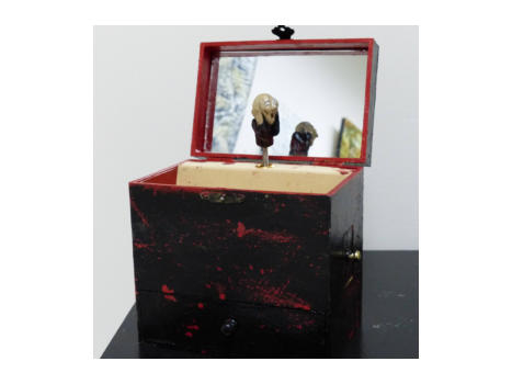 Acrylic and polymer clay on a music box